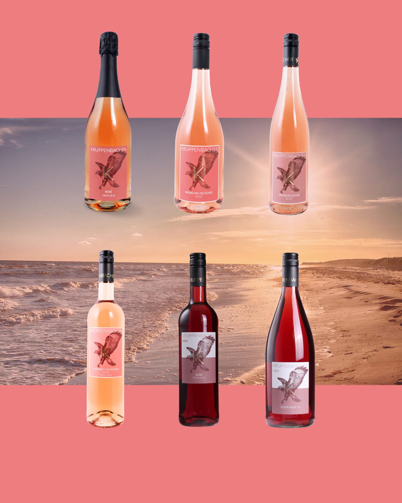 Entdecken Sie die Vielfalt des Rosés mit unserem sorgfältig zusammengestellten Weinpaket. Ob lachsfarben, zartrosa oder himbeerrot – jede Flasche bringt ihre eigene Persönlichkeit ins Glas. Freuen Sie sich auf fruchtige Aromen von Erdbeere, Himbeere und Pfirsich, gepaart mit einer feinen Frische und eleganter Mineralität.
